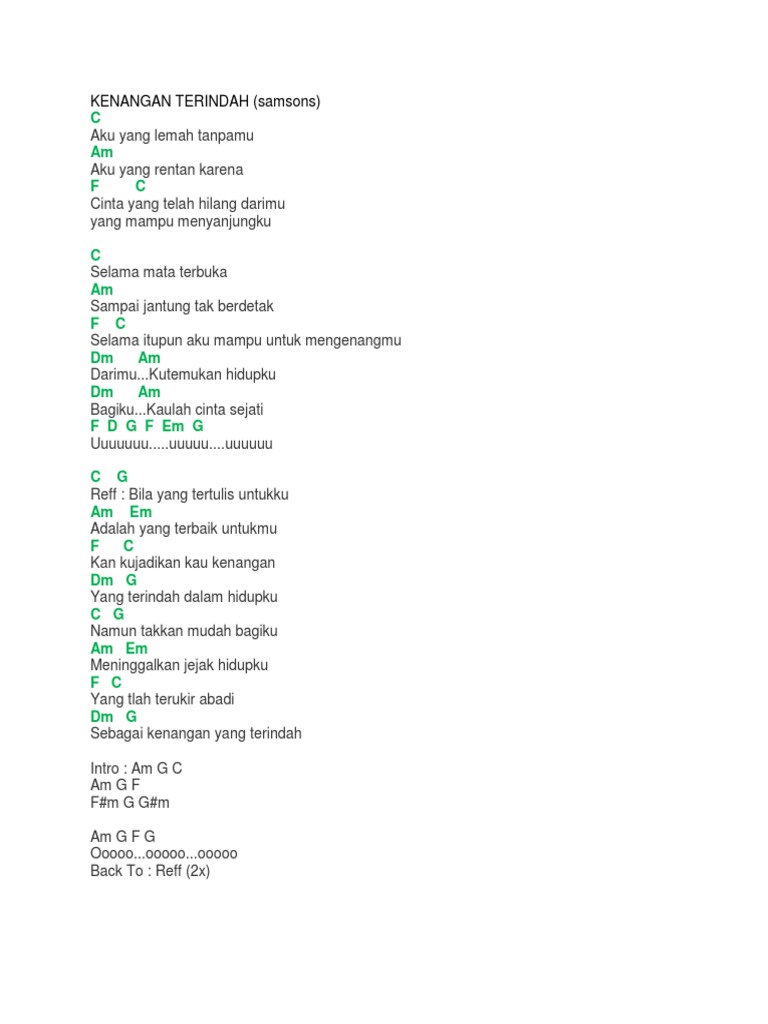 Am Dm G C Aku inginkan diri mu datang dan temui aku F Dm E Kan ku katakan padamu aku sangat. Macam-Macam Chord Gitar Kord Gitar Guitar Chord dan Lirik Lagu. Lirik lagu Kenangan Terindah - Samsons dan chord gitar.